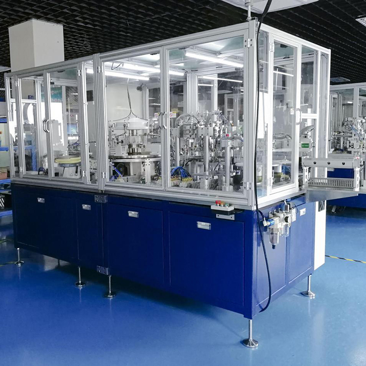2、產品上料裝配裝置通過分度裝配系統、搬運機械手、何服驅動等完成產品搬運至各工位進行組裝、檢測等