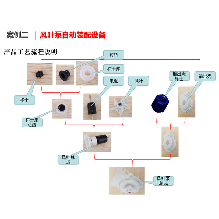 該設(shè)備自動(dòng)完成風(fēng)葉泵的自動(dòng)化裝配,設(shè)備配備了杯士上料噴油、O型圈上料噴油、杯士座上料噴油、杯士組件壓裝及高度檢測(cè);電樞上料及噴油、風(fēng)葉上料及壓裝、風(fēng)葉高度檢測(cè)、電樞及風(fēng)葉組件充磁;輸出殼上料及噴油、輸出殼杯士壓裝及高度檢測(cè),風(fēng)葉組件及輸出殼壓裝,最后通過高度檢測(cè)及CCD檢測(cè)自動(dòng)判定良品與不良品。合格產(chǎn)品自動(dòng)輸送到成品盤。